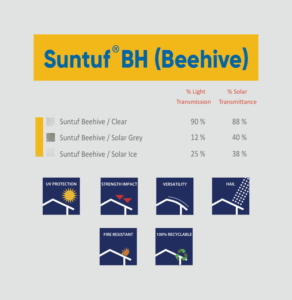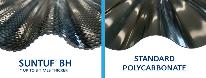 Being three times thicker than standard polycarbonate roofing, Suntuf Beehive Polycarbonate offers strength and durability while boasting the highest impact resistance available in profiled polycarbonate today.